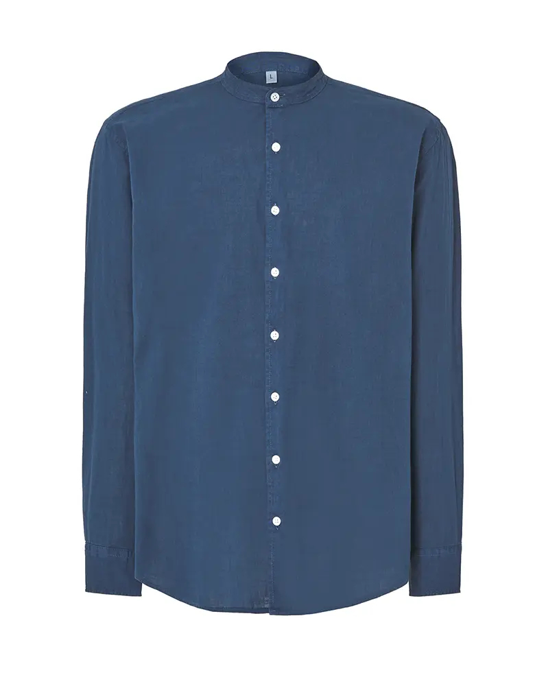 Camisa homem Mahon, perfeita para climas quentes, manga comprida, colarinho padre, composição 100% Algodão slub.