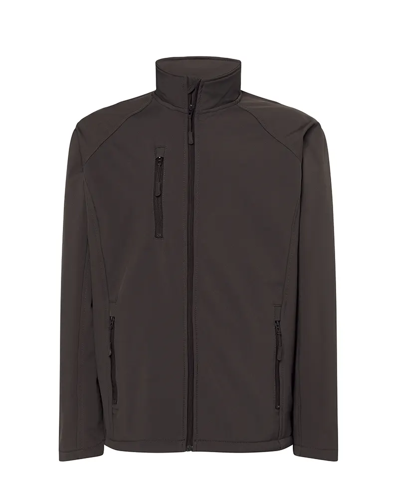 Casaco homem Softshell, com tecido de lã interna no mesmo tom, com um fecho completo, 3 bolsos laterais com fecho e 3 camadas com membranas respiráveis.