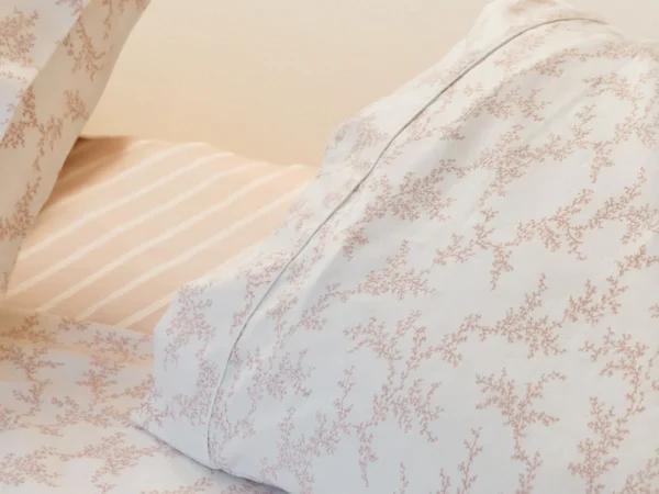 Lençol de cima estampado com aplicação de barra e vivo.