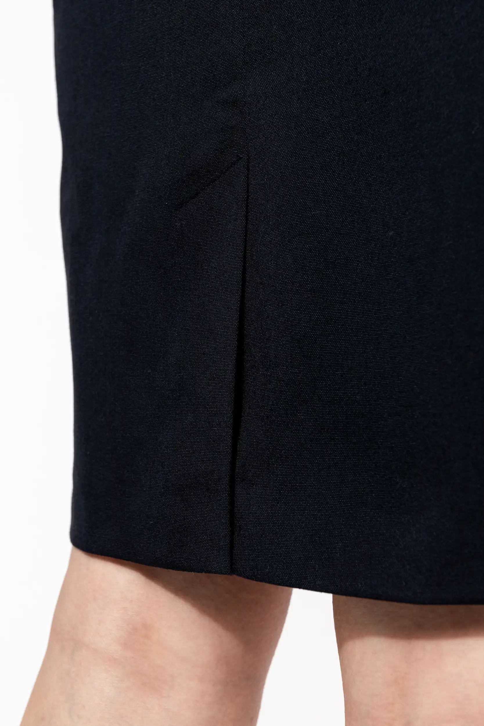 abertura (racha) na parte traseira e fecho invisível.